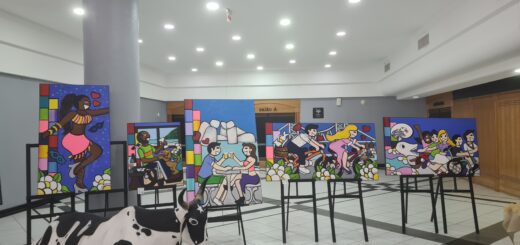 Neste ano, na entrada do Centrosul, junto à secretaria de credenciamento, uma mostra de artigos de rendas de bilro – considerada um dos símbolos da identidade cultural da cidade, com raízes açorianas e praticada há séculos pelas rendeiras locais, figuras do folclore da Ilha, o Boi de Mamão e uma mostra das pinturas de uma artista popular retratando figuras icônicas, desde bruxas até gurias saradas! Na ante-sala – antes do evento começar, e depois, na cerimônia, coube ao Grupo de Cordas da Orquestra Novo Alvorecer , de Florianópolis, animar a platéia e interpretar o Hino Nacional, de forma grandiosa.