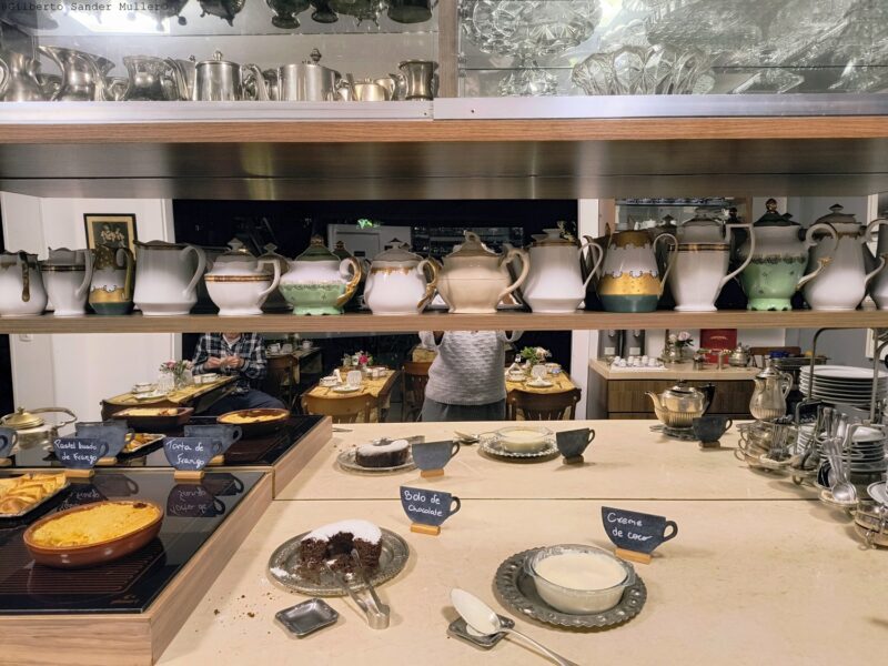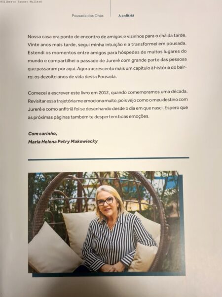 Mas o tema, aqui, é a Nova Pousada dos Chás, onde além do repouso, excelente café da manhã e ainda o chá das 17h às 20h, ou o Chá das Cinco, com buffet diariamente, pudemos ler os muitos livros, álbuns sobre a mágica história de Jurerê. Descobrimos, por exemplo, que um dos proprietários da área, que foi vendida para o pai de Leninha, como é chamada Maria Helena, descende da tradicional família Ramos, de Lages, na Serra Catarinense, onde nasci, e a família Ramos sempre foi a principal liderança política, tanto que elegeu prefeitos, deputados estaduais, federais, governadores.