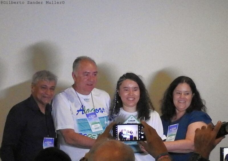 Júlio Cezar, secretário de Relações Federativas e Internacionais de Alagoas, representando o Governo do Estado; Bárbara Braga, secretária de Turismo de Alagoas; Marcelo Beltrão, presidente da Associação dos Municípios de Alagoas (AMA); Samuel Silva, da Associação Brasileira de Agências de Viagens de Alagoas (ABAV); André Santos, da Associação Brasileira da Indústria de Hotéis de Alagoas (ABIH); Vanessa Gomes, da Associação Brasileira de Bares e Restaurantes (Abrasel); Danielle Novis, do Maceió Convention; Marcelo Marques dos Administradores de Alagoas (Sindal). A empresária Adriana Vasconcelos, do Grupo MMM, proprietária do Ipioca Beach Resort, onde os congressistas estão hospedados e realizam seu congresso, destacou a importância de Maceió acolher o evento. “Nossa família foi desbravadora na busca pelo desenvolvimento de turismo na região, apostando firme em hotelaria. Por isso sabemos da importância do jornalismo para difundir aos quatro ventos as notícias e, aviso, são muitas. Nós em Alagoas estamos em busca de muito mais notoriedade e temos a certeza de que com esse congresso conseguiremos galgar mais alguns passos”. Além de cumprimentar e dar as boas-vindas aos participantes, a jovem empresária declamou poesia de sua autoria, na qual destaca as belezas da sua terra, a qualidade do turismo e a alegria por apoiar o Congresso.