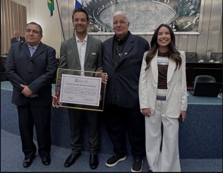 Na parte da tarde desta sexta-feira (26/09/25), o presidente da Abrajet/Alagoas Igor Pereira recebeu a Comenda Luís Vasconcelos, fundador do grupo MMM, falecido há cerca de cinco anos. Como é considerado o precursor da hotelaria na região da Grande Maceió, a Comenda com seu nome é distribuída (para personalidades que atuam para promover o turismo), pela Assembleia Legislativa de Alagoas, na data em que se comemora o Dia Mundial do Turismo, 27 de setembro.