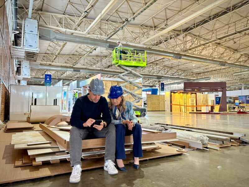 Marta e Eduardo conferem montagem do Festuris
