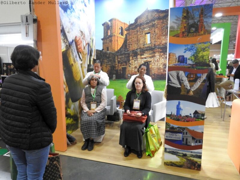 O Rio Grande do Sul esteve presente com estande no qual se aglomeraram municípios de todas as regiões e onde a alegria e mostra da cultura gaúcha esteve presente desde a abertura, com a presença do secretário Santini.  Mas, como é tradicional, alguns municípios se espraiaram com seus estandes. São Miguel das Missões precisava de espaço para a atender a fila que se formou para atendimento com as benzedeiras.  Eu própria fui benzida por dona Marlene!
