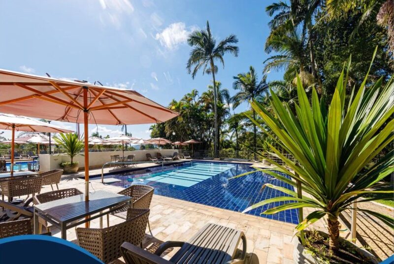 A infraestrutura também dispõe de dois restaurantes, bar na piscina, varanda panorâmica e estacionamento gratuito com pontos para recarga de carros elétricos, além de acessibilidade em todos os ambientes.
